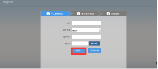 2.在單擊學(xué)員注冊按鈕后,進入學(xué)員注冊界面,輸入您的個人信息,填寫相應(yīng)的驗證碼,單擊“驗證”按鈕,進行個人信息驗證,驗證通過后,單擊“下一步”按鈕,如下圖所示。