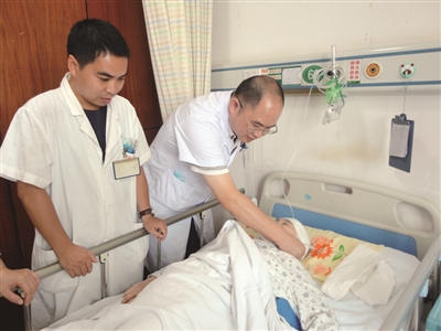 “我婆婆已經(jīng)醒過(guò)來(lái)了,現(xiàn)在能夠說(shuō)話(huà),手腳也能活動(dòng)了?!?月10日,在市中心醫(yī)院神經(jīng)內(nèi)科的病房里,一位阿姨興奮地告訴記者,她婆婆姓文,今年已經(jīng)71歲了, 8月10日晚上,婆婆在洗澡后,突然感覺(jué)頭痛,嘔吐,手腳不能活動(dòng),緊接著就昏迷了。家人急忙將她送到了市中心醫(yī)院搶救。經(jīng)檢查,文奶奶為突發(fā)腦出血,生命危在旦夕。