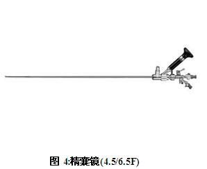 4、精囊鏡技術的優(yōu)勢:在臨床上還有相當一部分血精病例的原因不明。有的即使診斷明確,治療上往往也缺乏有效的治療手段,常常采用抗炎、穿刺抽吸等方法,效果往往并不理想,還存在一定程度的損傷,成為治療上的難題。精囊鏡可通過射精管進入精囊,循正常的精道解剖途徑逆行依次檢查精囊和射精管,發(fā)現病變可同時腔鏡下處理。如發(fā)現腫瘤,可予以切除,如為結石,可在精囊鏡(圖4)下檢查進行取出或者碎石,炎性改變可在鏡下對炎性黏膜給予燒灼,對積血進行沖洗等治療,具有操作方便,觀察直接,效果肯定等特點,成為診斷、治療血精和少弱精癥的新武器。