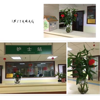 看科室布置得還挺有年味的吧,病房走廊上掛滿了象征喜慶的小紅燈籠,護(hù)士站臺(tái)面上為病友們擺放了各種零食、水果,是不是很有在家過(guò)年的味道?