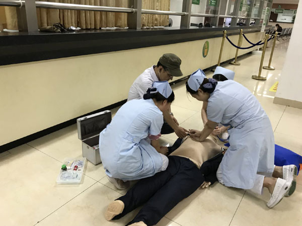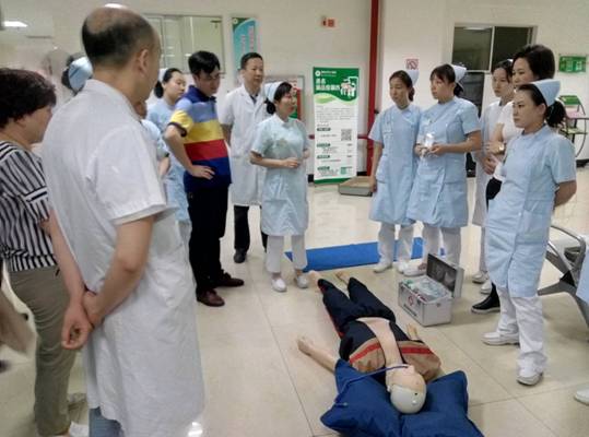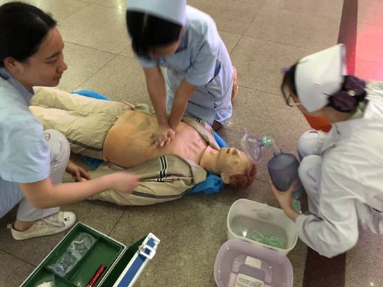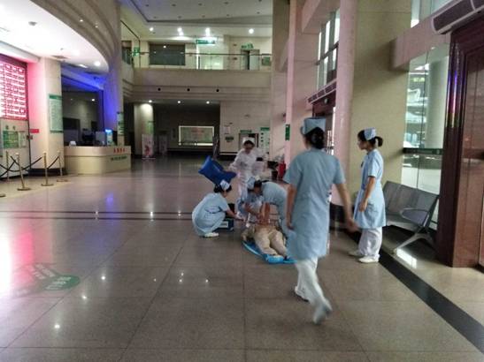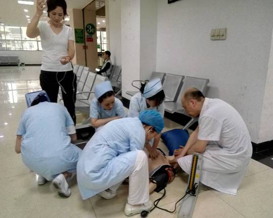 我院門診部積極開展心肺復(fù)蘇應(yīng)急演練活動(dòng) 發(fā)布時(shí)間:2018年6月6日 預(yù)覽:2286次 通訊員張永明報(bào)道:為切實(shí)加強(qiáng)門診醫(yī)務(wù)人員應(yīng)對(duì)突發(fā)事件的快速反應(yīng)能力,6月4日下班后,門診部組織分診、導(dǎo)診護(hù)士在門診進(jìn)行心肺復(fù)蘇(CPR)應(yīng)急預(yù)案演練,將原先在六樓示教室的技能培訓(xùn)轉(zhuǎn)移到門診進(jìn)行現(xiàn)場(chǎng)演練,提高實(shí)戰(zhàn)的能力。 原來,早在5月30日,醫(yī)務(wù)部就在門診三樓組織了應(yīng)急演練考核,由預(yù)先安排人員冒充暈倒在座椅上的病人,再用人體模型讓醫(yī)護(hù)人員進(jìn)行實(shí)際操作,來檢測(cè)周邊經(jīng)過的醫(yī)務(wù)人員急救意識(shí)和應(yīng)對(duì)能力,當(dāng)門診脊柱外科肖華斌醫(yī)師聽到分診護(hù)士顏娜呼救時(shí),立即趕到現(xiàn)場(chǎng),通過判斷患者意識(shí)、聽呼吸、摸頸動(dòng)脈搏動(dòng),發(fā)現(xiàn)患者心跳呼吸停止,馬上進(jìn)行胸外心臟按壓、開放氣道、人工呼吸等一系列搶救措施。 據(jù)悉,應(yīng)急演練重點(diǎn)是實(shí)地考察心肺復(fù)蘇操作技能在平時(shí)工作中在應(yīng)用,對(duì)演練過程中暴露出的一些問題進(jìn)行整改。通過演練,醫(yī)務(wù)人員突發(fā)事件后服從統(tǒng)一指揮,對(duì)整體施救流程、搶救意識(shí)明顯提高。醫(yī)護(hù)一體化心肺復(fù)蘇模擬演練有利于提高門診危重患者搶救成功率,同時(shí)也大大提升了門診醫(yī)務(wù)人員的急救能力,進(jìn)一步規(guī)范了應(yīng)急處置程序。