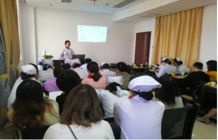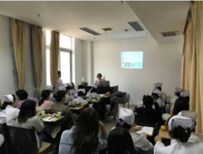 查房開始,主管護(hù)師蔣可講解消化系統(tǒng)的解剖生理、肝硬化的定義、形成機(jī)制及臨床表現(xiàn),讓與會(huì)者對(duì)肝硬化有了基本的了解。隨后,護(hù)士雷雙匯報(bào)了查房病人的病史、陽(yáng)性指標(biāo),針對(duì)病人存在的護(hù)理問題提出了診斷及措施,提出肝硬化又伴有糖尿病的病人應(yīng)該怎么做健康宣教及控制血糖。最后,護(hù)師李玲帶領(lǐng)大家到病房進(jìn)行了生命體征測(cè)量、血糖監(jiān)測(cè)、體格檢查的操作演示,并對(duì)病人進(jìn)行了健康知識(shí)宣教。