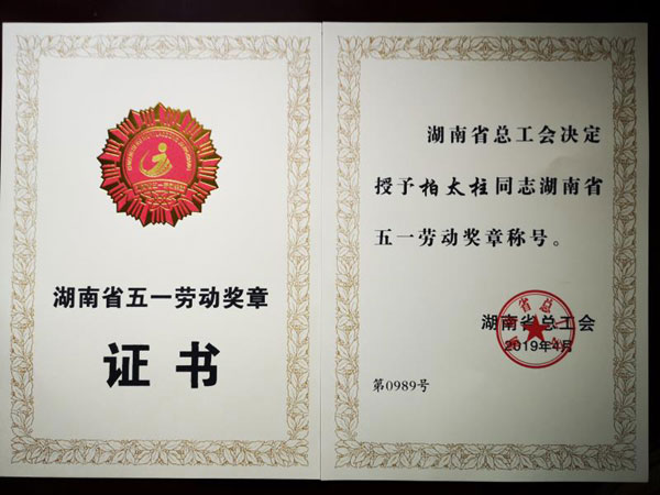 2019年4月28日,湖南省慶?!拔逡弧眹H勞動節(jié)暨表彰勞模和優(yōu)秀工匠大會在長沙隆重舉行。衡陽市中心醫(yī)院醫(yī)務(wù)部部長、大內(nèi)科主任、心內(nèi)科主任柏太柱獲得“湖南省五一勞動獎?wù)隆狈Q號。