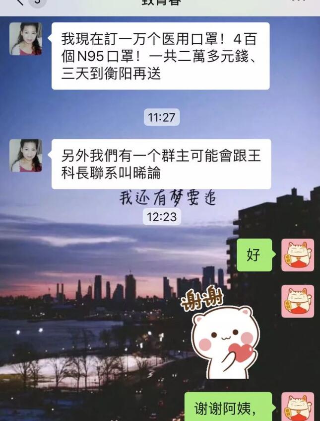 疫情無情,人間有愛。在全國上下萬眾一心、眾志成城全面抗擊疫情的關(guān)鍵時刻,我們身邊總有那么一些人、一些事,溫暖并感動著我們。來湖北黃岡援助一星期了、每天都能收到家人,愛人、親朋好友的慰問,在這里給大家道一聲平安!現(xiàn)在全國防護(hù)物質(zhì)緊缺,下晚班哪天,看到朋友圈,我們的家鄉(xiāng)衡陽,乃至我們的單位,也正在接受愛心公益物質(zhì)捐助,我馬上轉(zhuǎn)發(fā)朋友圈,我遠(yuǎn)方的一個阿姨,就馬上聯(lián)系了我,淑云,你真不錯,人在援助湖北,心系湖南衡陽,她立馬就在聯(lián)系防護(hù)用品的店家,給我們單位捐助了一萬多個外科口罩,及其他的防護(hù)用品、在這里給親愛的阿姨,到一身謝謝!正如歌中所唱:只要人人都獻(xiàn)出一點愛,世界將變成美好的人間。因為有愛,人間才會溫暖,予人玫瑰,手有余香;奉獻(xiàn)愛心,收獲希望。相信通過我們大家的齊心努力,一定能站勝這次疫情!