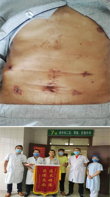 胃腸外科譚曙光主任醫(yī)師介紹,本例十二指腸來(lái)源惡性腫瘤十分罕見(jiàn),瘤體大,腫瘤分期晚,侵及臨近多個(gè)重要臟器及血管,手術(shù)難度極大,術(shù)前需做好應(yīng)對(duì)各種困難情況的充分準(zhǔn)備,如同拆除工藝復(fù)雜的地雷,避開(kāi)多個(gè)可能致命的引線及機(jī)關(guān),重建消化道時(shí)包括5個(gè)消化道吻合口,術(shù)后但凡出現(xiàn)1個(gè)吻合口瘺,都會(huì)出現(xiàn)消化液滲漏、彌漫性腹膜炎、重度感染等危及生命,導(dǎo)致前功盡棄。由于患者及家屬對(duì)胃腸外科團(tuán)隊(duì)充分信任,醫(yī)療團(tuán)隊(duì)才能全心投入,趟過(guò)這一個(gè)個(gè)埋設(shè)的雷區(qū),成功拆雷,完成這一次艱辛且順利的挑戰(zhàn)。